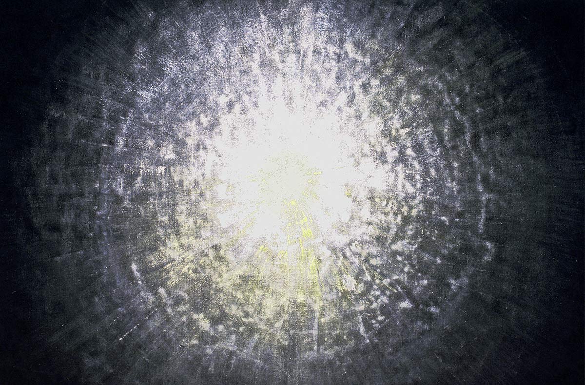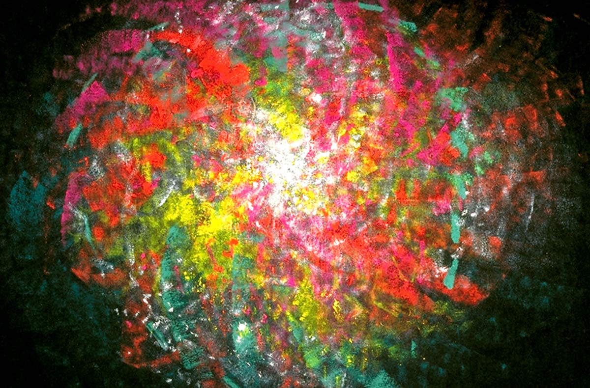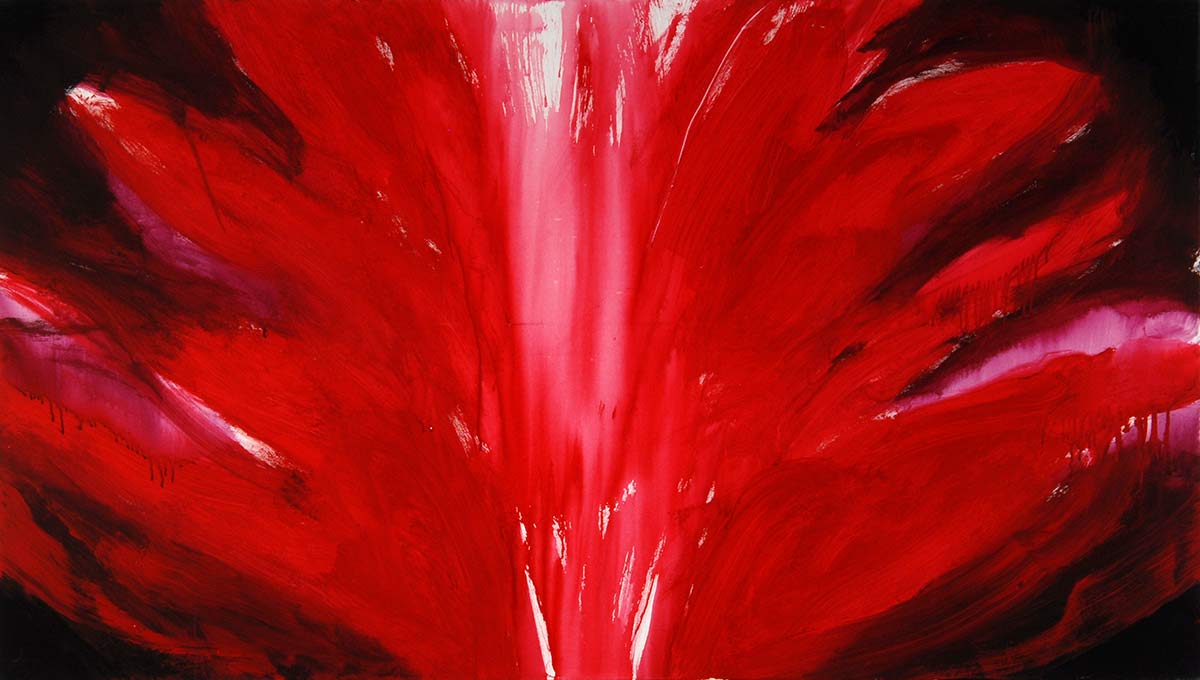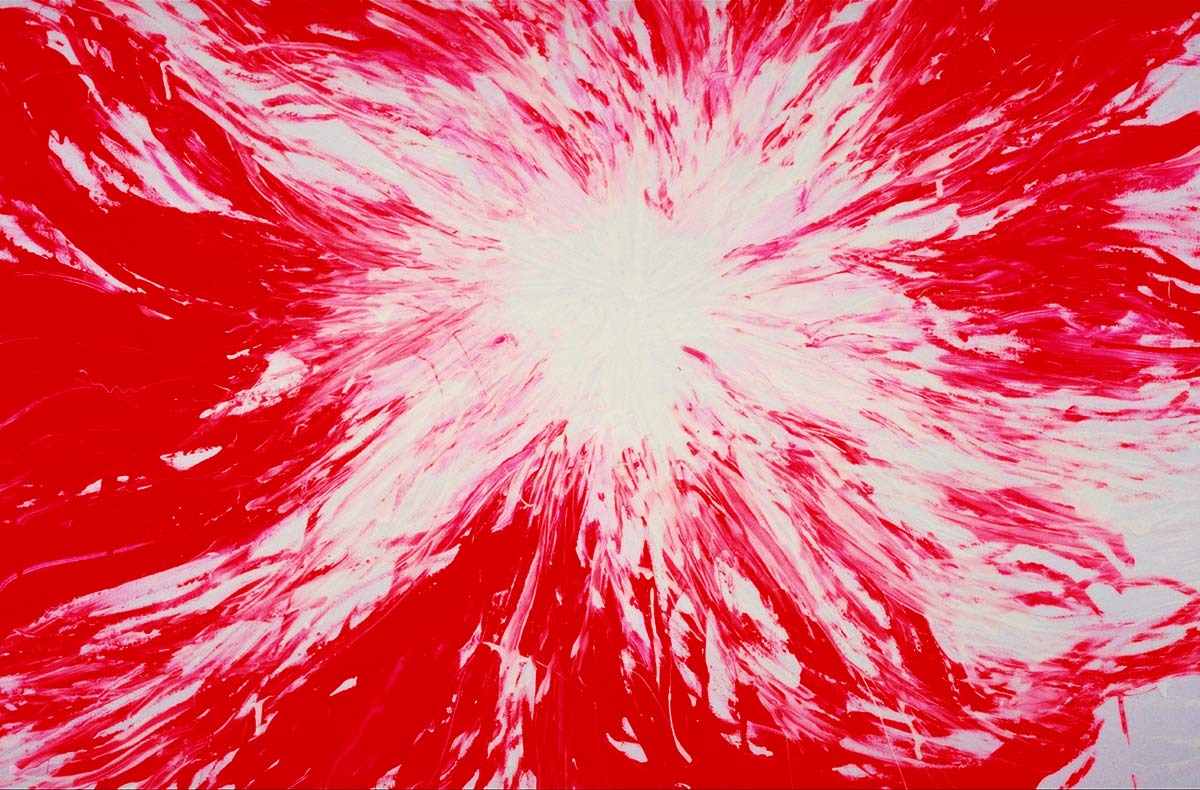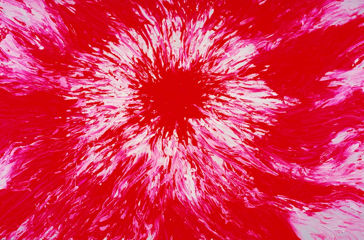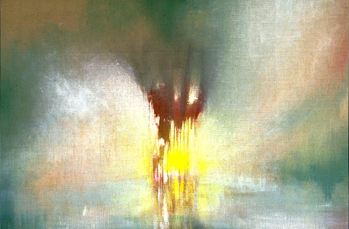 Unter dem Stichwort «Continuum» findet man im Lexikon «das sich lückenlos Fortsetzende» – ein Fluss. Beim Malen durchdringt die Musik mich und den Raum. Bald bin ich in der Musik und vergesse Subjekt und Objekt. Farbe, Leinwand, Musik, Atelier und ich werden eins. Der sichtbare Klang von Farbe und Form entspricht dann der hörbaren Gestalt der Klänge vollkommen, sodass sie in Einem schwingen.