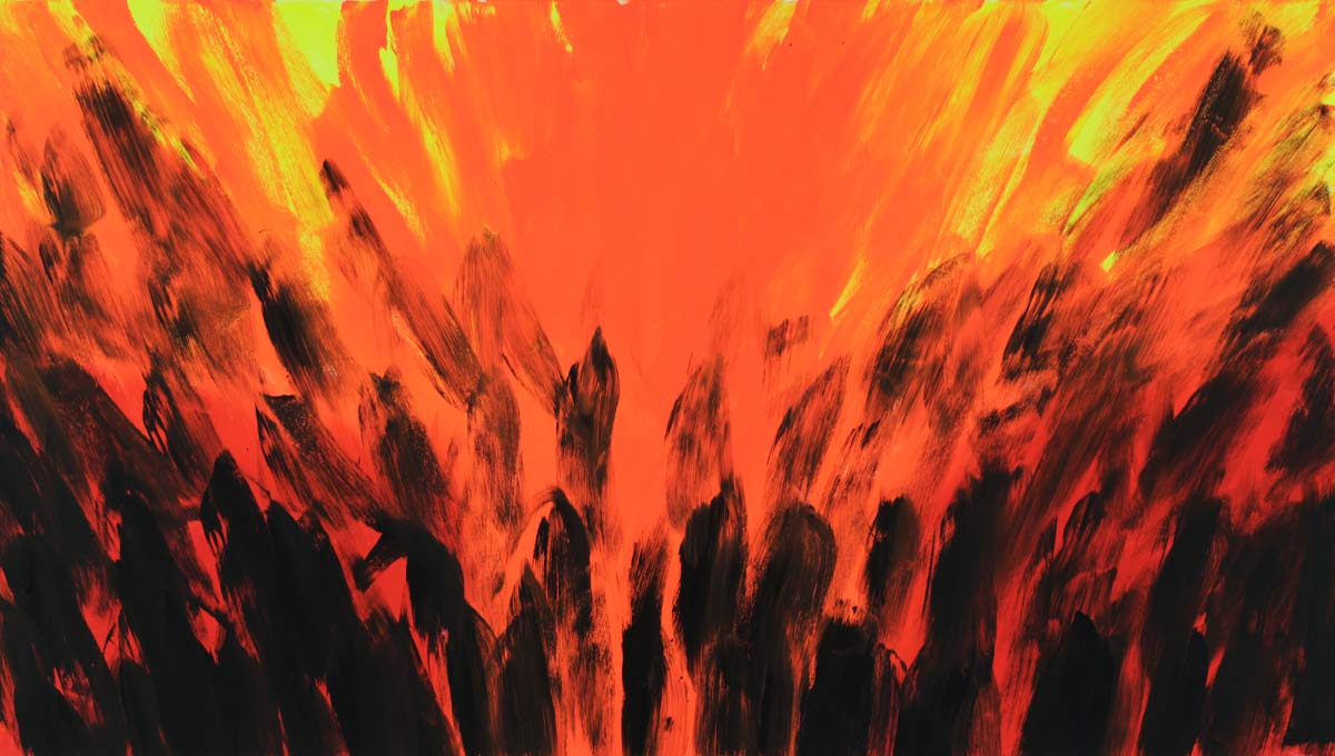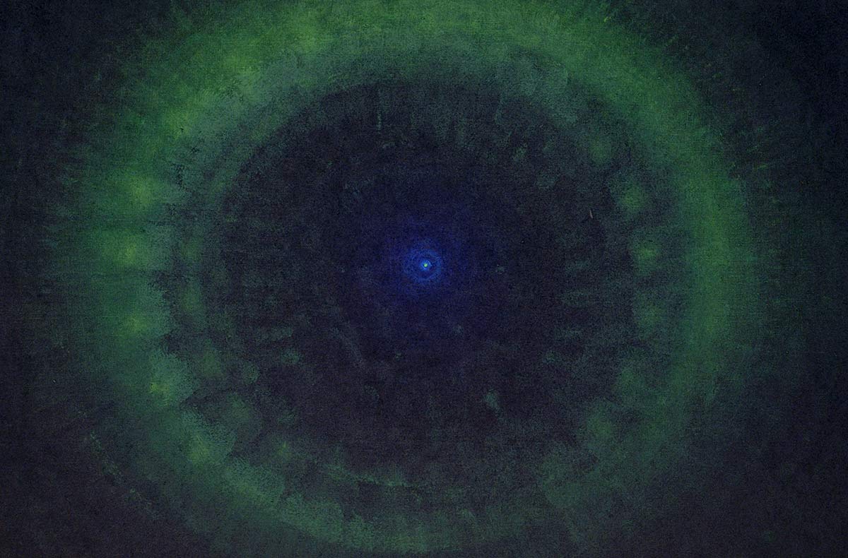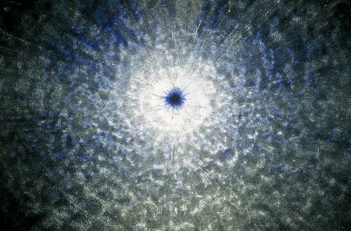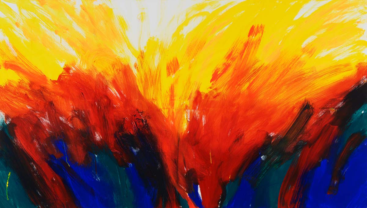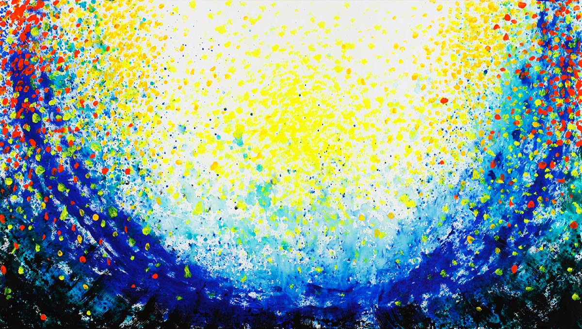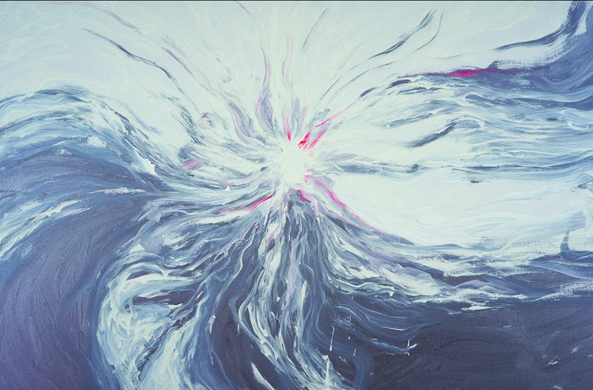 Unter dem Stichwort «Continuum» findet man im Lexikon «das sich lückenlos Fortsetzende» – ein Fluss. Beim Malen durchdringt die Musik mich und den Raum. Bald bin ich in der Musik und vergesse Subjekt und Objekt. Farbe, Leinwand, Musik, Atelier und ich werden eins. Der sichtbare Klang von Farbe und Form entspricht dann der hörbaren Gestalt der Klänge vollkommen, sodass sie in Einem schwingen.